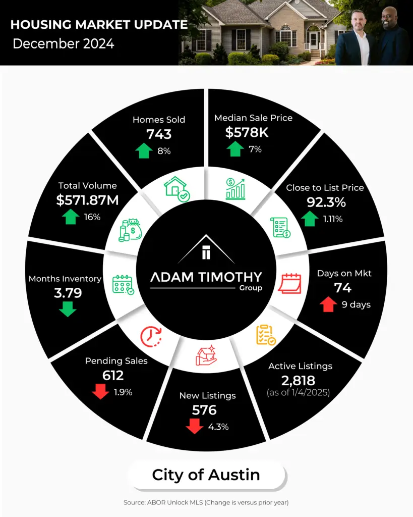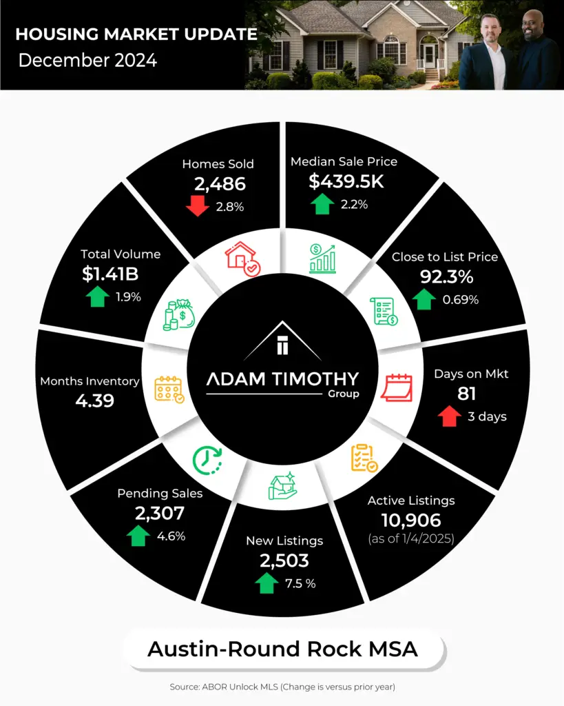 According to the Austin Board of Realtors, housing market trends in 2025 are expected to mirror those seen in 2024 and 2023. While affordability and longer days on market may remain considerations, the ongoing population growth, strong job market, and refined pricing strategies by agents and sellers create a positive outlook. Buyers and sellers can look forward to a balanced market offering opportunities for both sides.