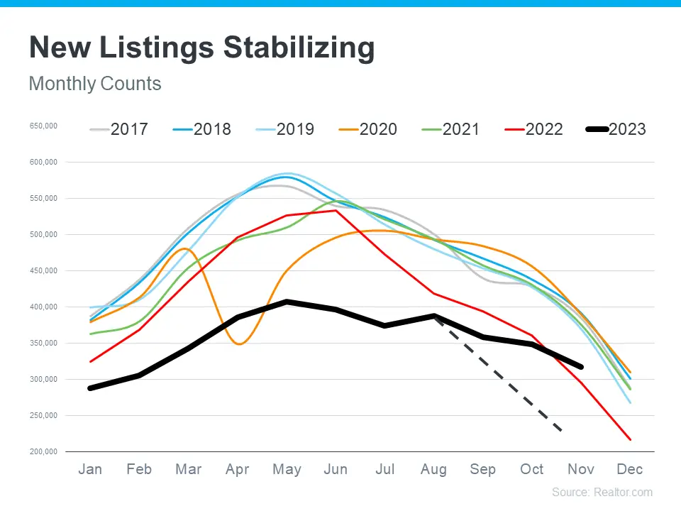 - For buyers, new listings stabilizing is a positive sign. It means you have a more steady stream of options coming onto the market and more choices for your next home than you would have at the same time last year. This opens up possibilities and allows you to explore a variety of homes that suit your needs.
